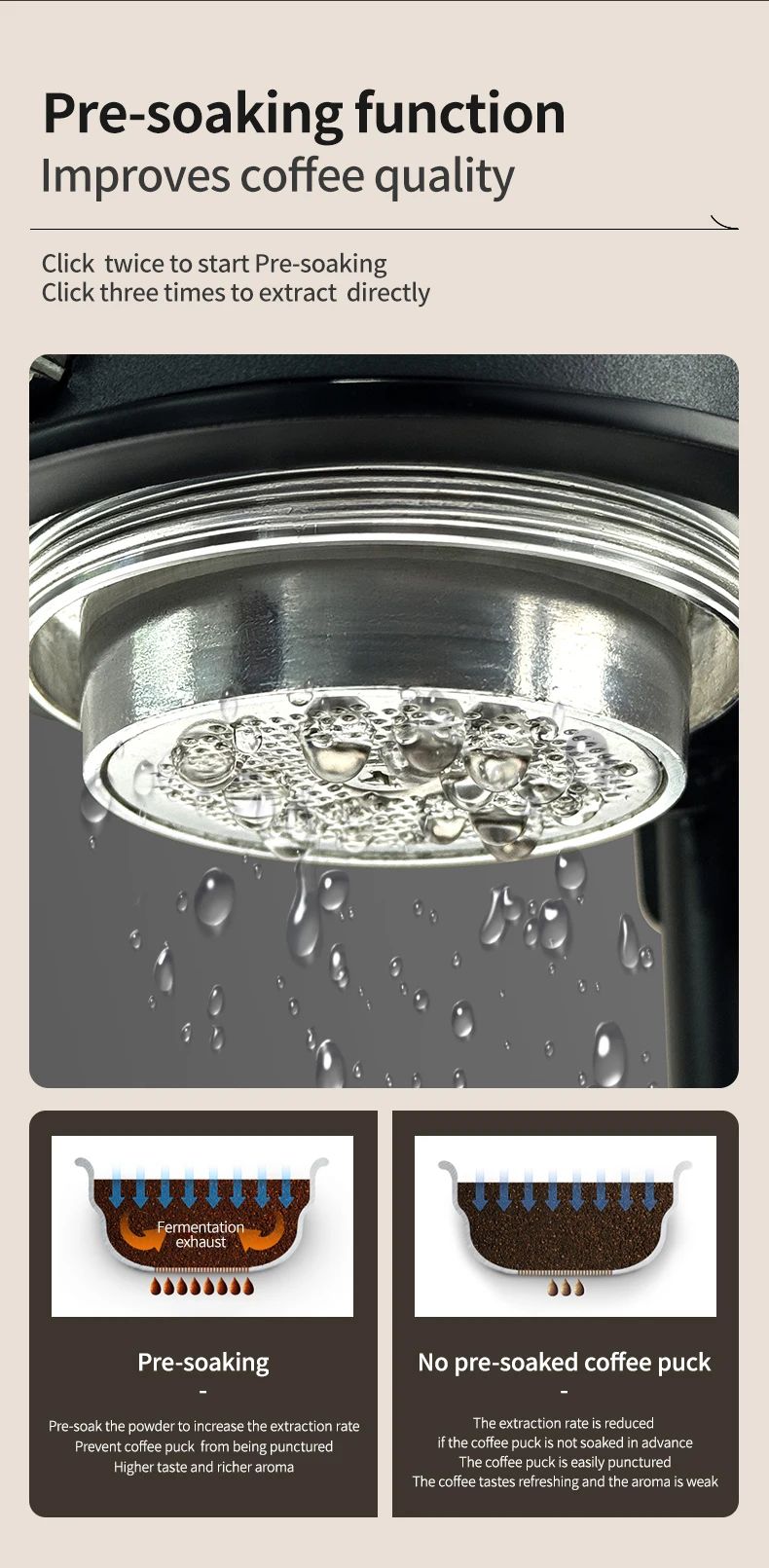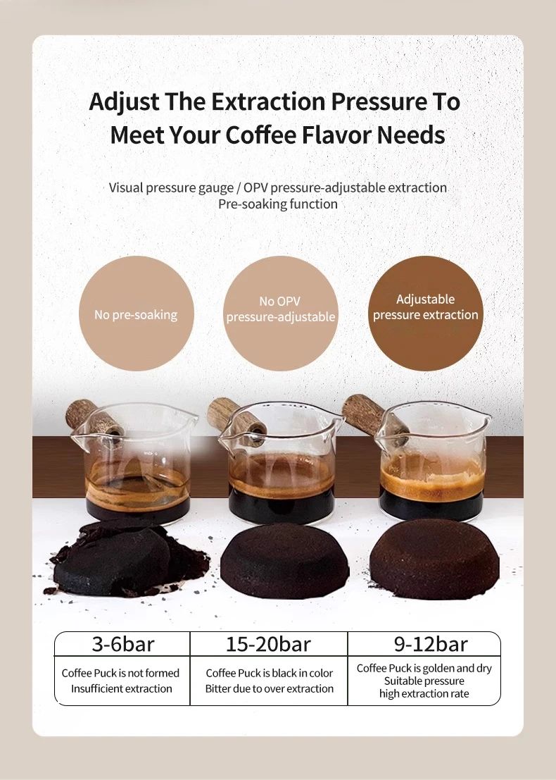 Visual pressure gauge: You can clearly see the pressure changes, and the pressure can be adjusted manually to meet different taste requirements.