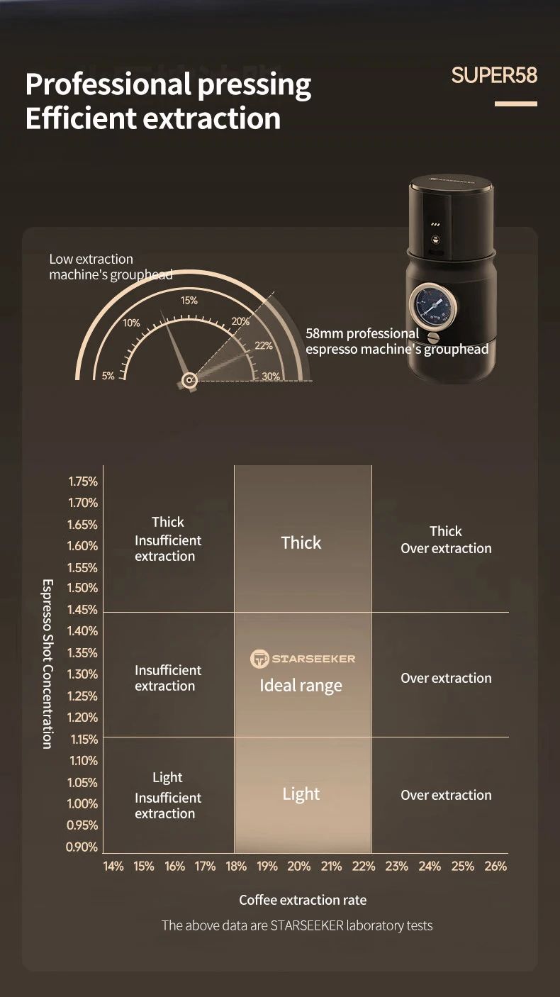 18-20g Capacity :Large capacity powder basket, you can enjoy espresso outdoors, it is an ideal choice for coffee lovers